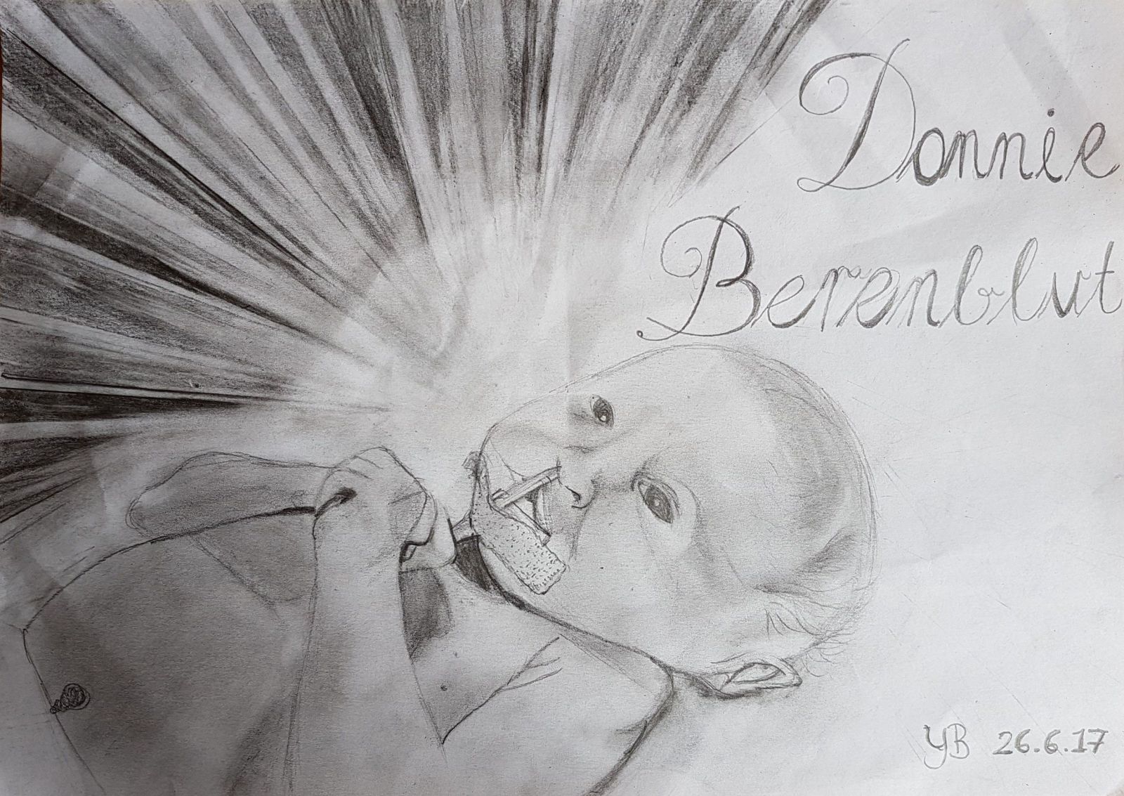 PS This week’s pics – Donnie as drawn by Yael, Donnie in a restful sleep during one of his trials “in air” and Donnie today.