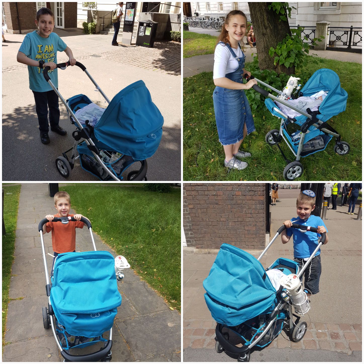 Donnie is generally very settled on our outings. He sleeps a lot - often settled by motion which changes according to our journey and this week included the sensation of cobbled streets, grassy hills and the River Thames.