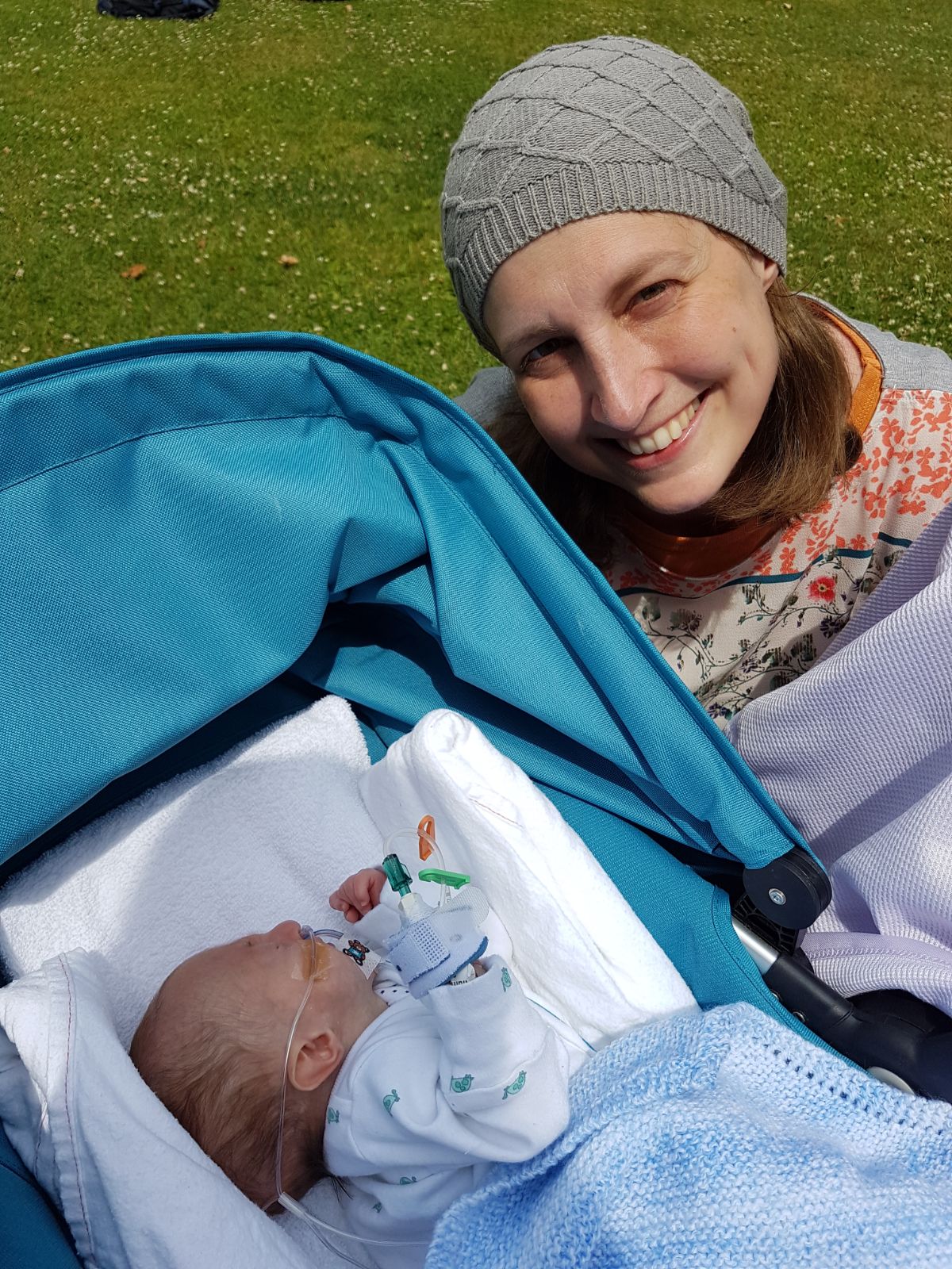 Today, I took Donnie out of the neonatal unit where he lives. We went for a walk to a local park and we enjoyed quality time together in the sun - just the two of us. Plus a very close friend. No attending doctors or nurses.