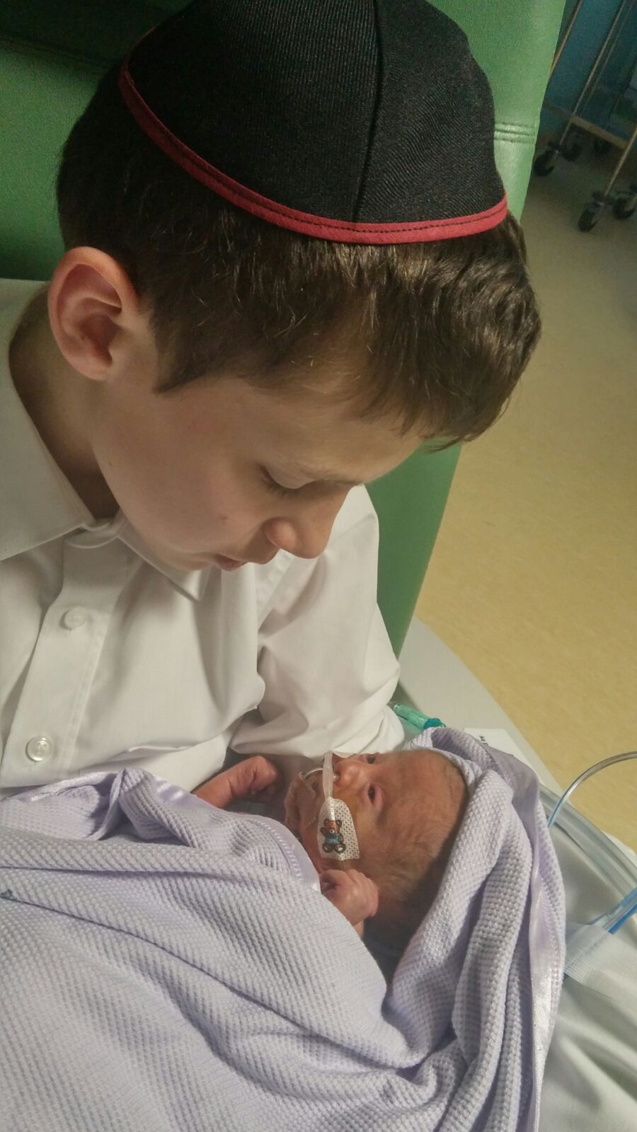 Hi all, all being well, our baby will be named in Synagogue on Thursday morning with his Jewish name as a circumcision is very unlikely. Yesterday was a very tiring day... Lots of cuddles and an amazing photography shoot that the staff organised with a professional photographer who donates her time. We'll share some of those images when they come in ... It may take some time. In the meantime, here's a nice one of the soon-to-be-barmitzvah-boy and his brother who was very alert for a long time.